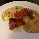 Es werden zwei Menüs angeboten, ein kleines (5-6 Gänge) und ein großes (5-7). Die einzelnen Gänge kann man auch à la carte bestellen. Man ist allerdings erstaunlich unflexibel, was den Austausch einzelner Gänge zwischen den Menüs angeht; bei uns war das nur deshalb möglich, weil wir bestimmte Abneigungen bei der Reservierung bereits angemeldet hatten. Wenn aber jemand kommt und erst im Restaurant sagt, dass er etwas nicht mag oder verträgt, dann hat er Pech gehabt. Mir ist das ein Rätsel. An der Einkaufsplanung kann es nicht liegen, denn die Entscheidung für das eine oder das andere Menü wird ja erst vor Ort getroffen, auch für die Anzahl der Gänge. Sehr gästeorientiert ist das nicht.