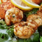 Norwegisches Premium Lachsfilet mit gebratenen Gambas auf großem buntem Marktsalat - € 22,80.