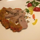 Meine Geflügelleberpastete ist wohl ein Produkt, das in der kleinen ovalen Dose durchaus mal Qualität hatte - in Tranchen aufgefächert präsentiert, dazu ein Chutney – wohl aus Tomaten-Apfel gekocht als begrenzender Kreis verteilt, ein paar einzelne bunte Paprika-Schnipsel, tlw. angeröstete Saaten / Sonnenblumenkerne sowie eine aufgeschnittene Mini-Roma-Tomate mit einem Stängel glatter Petersilie bilden die Deko. Bereits optisch passt das Preis-Leistungs-Verhältnis des Angebots. Wie erwartet ist die Geflügelleberpastete okay – aber wirklich nicht der „Bringer“ (da hat die Marke im Laufe der Jahre sehr abgebaut) doch das Chutney – ich nenn das Tomaten-Apfel-Marmelade - ist dafür der Hammer, der die fehlende Note bei der Leberpastete wirklich rausholt. Auch gemahlener Pfeffer (der richtig frisch aromatisch duftet) perfektioniert das Gericht. Insgesamt bin ich sehr zufrieden mit meiner Wahl und dem Gericht – gebe aber später den Hinweis, dass unsere westlichen Nachbarn da sicher günstiger eine bessere Qualität der Pastete anbieten, als die augenblicklich Gewählte. Da ich zunächst von Gänseleberpastete spreche, werde ich gleich zu recht auf die verwendete „Geflügelleberpastete“ hingewiesen, da Gänseleberpastete ansonsten das Dreifache kosten würde. Die Jungs sind vom Fach – und machen ihren Job gut.