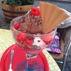 Meine Liebste hingegen war von ihrem Schwarzwald-Becher recht angetan, insofern zumindest, dass die wohl in Kirschwasser eingelegten Kirschen (Zitat:) "bombastisch" waren (ich musste mich dann für die Rückfahrt aber auch selbst ans Steuer setzen). Das Eis an sich war ok.