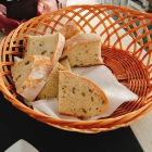 Es beginnt mit einem Schälchen roter Soße, die mich an ein stark tomatisiertes Ajvar erinnerte. Dazu ein Korb mit einem sehr guten Weißbrot mit Oliven. Das gefiel uns schon einmal gut.