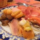 Mit dem Erhaltenen waren wir sehr zufrieden. Meine Frau hatte zu ihren Tapas eine Extraportion aufgeschnittenes Weißbrot und bekam von mir meinen Beilagensalat. Die Fischsuppe war wie immer ganz ausgezeichnet und mit viel Inhalt an Edelfisch und Meeresfrüchten. Bekommt man schon im Lokal eine große Portion davon, hatte ich diesmal den Eindruck, dass man mir noch eine halbe Kelle Suppe zusätzlich in das von meiner Frau von zuhause mitgebrachte Gefäß gefüllt hatte. Die Gambas und Calamares kamen zur Abwechslung mal auf Holzspießen daher, was dem feinen Geschmack natürlich keine Abbruch tat; die zu den Spießen gereichten Patatas waren wie immer first class. Da wir keine Flasche Condesa zur Hand hatten tranken wir zu unseren Gerichten einen Schluck Primitivo Puglio. Es mögen auch zwei gewesen sein; niemand von uns musste noch fahren.