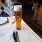 Senora Guzman und eine offenbar neue weibliche Servicekraft kamen schnell mit den Speisekarten an den Tisch; wir baten um ein wenig Bedenkzeit sowohl bei den Speisen wie auch bei den Getränken. Wein trinke ich im "La Paella" nicht mehr und zwar seit Beginn der Pandemie. Damals war "Paella"-Wirt Pico gestorben; er hatte sich tragischerweise bei der Beerdigung seines Vaters, der als eines der ersten Corona-Opfer im Saarland verstorben war, mit dem Virus angesteckt und war knapp zweieinhalb Wochen später ebenfalls tot. Leider hatte Senora Guzmann, seine Witwe, kurz darauf die bis dahin recht ordentlich bestückte Weinkarte sehr zusammengestrichen; weiß der Geier warum, für mich war leider in der verbliebenen kargen Auswahl nichts mehr dabei. Schwiegersohn Mehmet bestellte sich ein Glas Chardonay; ihm hat er geschmeckt, mich hat der angebotene Probeschluck dagegen nicht überzeugt. Das Geburtstagskind trank alkoholfreies Weizenbier (0,5l EUR 4,50); meine liebe Frau trank zunächst ein kleines Wasser (0,2l EUR 2,50) und zum Essen (für die Rückfahrt war ich FvD) zwei Glas weiße Sangria für jeweils EUR 7,50. Ich hatte zwei Weizen (2 x 0,5l zu je EUR 4,50).
