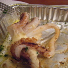 Äusserst zufrieden war meine liebe Frau mit ihrem Filete de lomo sprich dem Rumpsteak; der gewünschte Gargrad war bei der Bestellung nicht abgefragt worden, aber der beachtliche Fleischklotz war ganz eindeutig spitzenmässig "medium" gebraten. Brüllend heiß wie immer die Patatas Bravas, sehr fein die angerösteten Zwiebelstreifen, der Blumenkohl und die geschmorten Champignons. Hätte sie zuvor eine Vorspeise gehabt, hätte sie höchstwahrscheinlich nicht mehr als die Hälfte ihres Gerichts geschafft; so bezwang sie es mit Ach und Krach. Hatte ich beim letzten Besuch leicht gemeckert, weil die Einlagen meiner Sopa de Pescado damals fast schon haschiert daherkamen, was sehr ungewöhnlich war, waren die Fischeinlage wie auch die Garnelen, die Miesmuscheln und die Calamares diesmal wie gewohnt wieder schön grobstückig; so liebe ich es! Die Stücke mit der Zunge gegen den Gaumen drücken und erst Geschmack aufnehmen vor dem anschliessenden Zerkauen und Hinunterschlucken; so muss das sein. Und meine gegrillte Calamares, wie immer grobgeschnittene gutgewürzte Tuben und dazu Füßlein, hatten diesmal nicht nur Gesellschaft von einer sonder sogar von zwei Riesengarnelen. Sehr fein! Die ungewohnte und in der Speisekarte nicht erwähnte Beilage von Schmorgemüse hätte ich eigentlich nicht gebraucht; die geschmorte großen braunen Champignons dürfen bei künftigen Bestellungen "wiederkommen", der Rest (Auberginen etc.) muss nicht noch einmal sein.