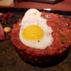 Das Tatar zu Beginn wurde im Ring angerichtet, gekrönt von einem Wachtelei mit noch flüssigem Gelb