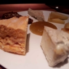 Schweizer Schnitt- und französische Weichkäse von einem sehr guten Buffet, aber ob die Ware durch die Hand eines Affineurs gegangen ist? Dazu ein schön lockeres Früchtebrot, sehr gut. Trotz der abweichenden Meinung meiner Kollegin lasse ich diesen Gang außer Bewertung. Denn an das, was auf Wunsch netterweise möglich gemacht wurde, kann nicht derselbe Maßstab wie an die Angebote der Karte angelegt werden.