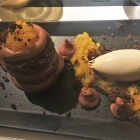 Der Pulpo ist ordentlich gegart, an der Melone ist auch nichts auszusetzen, der Staudensellerie ist ok. Aber das Ganze hat vorne und hinten nichts besonderes. Und dass sich die Küche der unsäglichen Balsamicocreme bedient, die einmal quer über alles gekleckst wird, ist für sich genommen schon ein Unding.