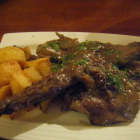 Wir hatten nach und nach auf dem Tisch: "Pimientos del piquillo" (EUR 9,90), "Pulpo á feira ( a la gallega)" (EUR 13,90), "Conejo con dátiles al Brandy" (EUR 11,90), "Calamares" (EUR 13,90), "Patatas alioli" (EUR 4,90), "Albóndigas" (EUR 6,90), "Champinones ajillo" (EUR 6,90), "Sopa castellana" (EUR 6,90) und "Ensalada Mixta" (EUR 7,90). Wobei geschmacklich wirklich alles sehr authentisch und fein war. Meine persönlichen Highlights waren die "Sopa castellana", eine Brot-Knoblaussuppe, mit Streifen vom Serranoschinken (sehr pikant und bestens abgewürzt) sowie der Pulpo. In Wasser gekocht, dazu im Pulpowasser gekochte ungeschälte Patatas und natürlich ebenfalls sehr gut gewürzt. Das Conejo sprich Kaninchen war ebenfalls sehr gut mir insgesamt aber doch eine Spur zu süß. Im Gegensatz zum Feldhasen ist das Fleisch vom Kaninchen an sich schon leicht süßlich und dazu noch die süssen Datteln.....; ein bisschen süßlicher Overkill. Vom Brandy habe ich bei diesem Gericht übrigens nicht ein Fitzelchen geschmeckt. Meinen beiden Damen gefielen neben dem Pulpo auch die Calamares, die mit reichlich Knoblauch versetzten Champignons und die kleinen roten Paprikaschoten, die mit Seeteufel gefüllt waren. Auch der gemischte Salat soll gut gewesen sein. Nicht so der Bringer waren nur die "Patatas alioli"; da sind mir an fast jeder Frittenbude die dort erhältlichen "Pommes mit Majo" lieber. Da der Preis unter Preis-/Leistungsverhältnis und nicht hier mit eingeht, kann ich gute vier Sterne für "Essen und Trinken"vergeben.