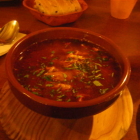 Wir hatten nach und nach auf dem Tisch: "Pimientos del piquillo" (EUR 9,90), "Pulpo á feira ( a la gallega)" (EUR 13,90), "Conejo con dátiles al Brandy" (EUR 11,90), "Calamares" (EUR 13,90), "Patatas alioli" (EUR 4,90), "Albóndigas" (EUR 6,90), "Champinones ajillo" (EUR 6,90), "Sopa castellana" (EUR 6,90) und "Ensalada Mixta" (EUR 7,90). Wobei geschmacklich wirklich alles sehr authentisch und fein war. Meine persönlichen Highlights waren die "Sopa castellana", eine Brot-Knoblaussuppe, mit Streifen vom Serranoschinken (sehr pikant und bestens abgewürzt) sowie der Pulpo. In Wasser gekocht, dazu im Pulpowasser gekochte ungeschälte Patatas und natürlich ebenfalls sehr gut gewürzt. Das Conejo sprich Kaninchen war ebenfalls sehr gut mir insgesamt aber doch eine Spur zu süß. Im Gegensatz zum Feldhasen ist das Fleisch vom Kaninchen an sich schon leicht süßlich und dazu noch die süssen Datteln.....; ein bisschen süßlicher Overkill. Vom Brandy habe ich bei diesem Gericht übrigens nicht ein Fitzelchen geschmeckt. Meinen beiden Damen gefielen neben dem Pulpo auch die Calamares, die mit reichlich Knoblauch versetzten Champignons und die kleinen roten Paprikaschoten, die mit Seeteufel gefüllt waren. Auch der gemischte Salat soll gut gewesen sein. Nicht so der Bringer waren nur die "Patatas alioli"; da sind mir an fast jeder Frittenbude die dort erhältlichen "Pommes mit Majo" lieber. Da der Preis unter Preis-/Leistungsverhältnis und nicht hier mit eingeht, kann ich gute vier Sterne für "Essen und Trinken"vergeben.