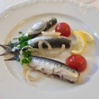 • Eingelegte Sardinen in einer milden Wermuth-Balsamico-Weißwein-Marinade (6.-€) für mich und
