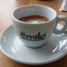 Statt Dessert bitte einen Espresso Macchiato (€ 2,20). Die Kaffeebohnen von einer mit Bedacht ausgewählten Rösterei namens Emilo. Mir persönlich war er dennoch etwas zu säuerlich und angesichts des mikroskopisch kleinen Milchanteils fand ich den Aufpreis von 40 Cent zum nomalen Espresso etwas ambitioniert.