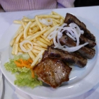 Meine ständige Begleiterin ist beim Jugo berechenbar: Entweder Pljeskavica oder Pola Pola. Dieses Mal Pola Pola mit Pommes (12,50 €). Zugegeben bin auch ich leicht ausrechenbar mit meinen Grilltellern, der hier Spezial-Grillteller hieß (14,00 €).