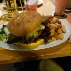 Aber auch ich hatte mir mit meinem „Homestyle Angus Burger“-den Fleischgenuss aus 200g irischem Angus Beef mit Salat, frischen Zwiebeln, Tomaten, Gewürzgurken, Cheddar-Käse und würziger Burger-Sauce, dazu Pommes frites und Salat recht viel vor genommen. Aber da es kein Mittag gab, war ich doch recht zuversichtlich.