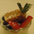 Zum Abschluss servierte Max Richter noch eine Mascarpone-Creme mit Früchten und kleinen Kuchenstücken und einem Minzeblatt obenauf (da muss ich immer an den Film „Der Sinn des Lebens“ von Monty Python denken - https://www.youtube.com/watch?v=cNV_AUpB5Q8).