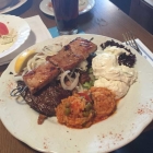 Wir hatten einen Hauswein rot 0,25 l für 5,80 € , ein dunkles Weizen für 3,60 €, gegrillte Calamare mit Reis Remouladensoße und gemischten Salat für 15,50 € und Lammhaxe mit grünen Bohnen , Schafskäse und gemischten Salat für 16,50 € .