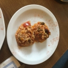 Der Reis war auf den Punkt gegart und auch schön schmackhaft. Den hat man beibehalten. Schön gewürzt, tomatiger Geschmack und mit Erbsen und Paprika verfeinert. Hätte rhig etwas mehr sein dürfen.