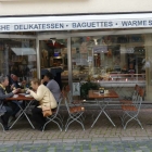 Doch dann kamen wir am Fischhaus Schuster vorbei, wo wir verschiedene Angebote für einen Mittagsimbiss im Fenster und auch auf Aufstellern vor der Tür fanden. Das Angebot einer Fischsuppe für 4,95 € fand unser einhelliges Interesse, und so betraten wir das Geschäft. Sofort fragte eine der Mitarbeiterinnen hinter dem Tresen nach unseren Wünschen, und wir bestellten zweimal die Fischsuppe.