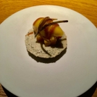 Weiter geht es mit der Schulter vom Rind, die stark geschmort wurde und in einer Art Pulled Beef in ein Nudelblatt gerollt wird. Dazu gibt es Rindermark und eine Kruste, in der noch mehr Mark verarbeitet wurde. Die Demi Glace wurde mit reichlich Rotwein eingekocht, was ihr eine intensive Tiefgründigkeit gibt. Etwas Petersilienöl vervollständigt dieses schlotzige Vergnügen. Das ist einfach nur lecker.
