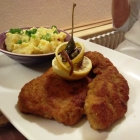 Bei den Hauptgängen ging es noch eine Spur zünftiger zu. Zwiebelrostbraten, Mühlen-Burger, Schweinemedaillons, Curry-Wurst, Wurstsalat und halbes Hähnchen erfreuten das fleischfutternde Volk. BBQ-Lachs und auf der Haut gebratenes Zanderfilet mit Apfel-Rieslingkraut suggerierten Fischfreuden. Vegetarier durften sich an hausgemachten Kartoffelgnocchi mit mediterranem Gemüse laben. Eine Auswahl, die sowohl kleineren Gelüsten wie auch handfestem Hunger locker standhalten würde. Einfaches in Bestform eben – ganz im Gehrlein’schen Sinne.