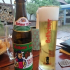 Für den Durst waren es an diesem Abend zwei Flaschen Teinacher Classic Mineralwasser (0,5l für 3,50 Euro) sowie ein Tannenzäpfle aus dem Schwarzwald (0,33l für 2,90 Euro). Dass ich dieses badische Staatsbräu ausgerechnet aus einem Bellheimer Bierkelch trinken durfte, nahm ich ganz gelassen und mit grenzüberschreitendem Hopfenhumor zur Kenntnis.