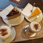 Wir wählten uns zwei Torten und je einen Latte Macciato sowie einen Cappuccino. Die Preise sind ok, die Selbstbedienung gewöhnungsbedürftig. Die zwei älteren Damen hinter dem Tresen sind mit ihren Aufgaben leicht überfordert, und so dauert das anstehen glatt mal schlappe 15 Minuten, bis alles fertig ist.