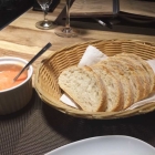 Mit Brot und Dip vom Haus hatten wir hier gar nicht gerechnet. Da standen plötzlich ein Brotkorb mit köstlichem Baguette und ein erfrischender Dip von frischen, fein zerkleinerten Tomaten vor uns. Das Brot ganz frisch gebacken: außen helle, krosse Kruste – innen fluffig weich. Herrlich!