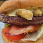 Ne andere Hausnummer war dann schon der Spargelburger. Ein imposantes Teil, mit einem dicken, saftig gebratenen Patty aus Angusrind. Belegt war der Burger mit Romanasalat am Boden, darüber einige Scheiben Tomaten und der gebratene Schwarzwälder Schinken schaute auf beiden Seiten des Burgers heraus.