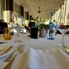 und allegorischen Statuen natürlich toll gewesen. Allerdings räumten die jungen Damen und Herren in Kellnerkluft außen schon eilig ein, denn schwarze Wolken verkündeten ein Gewitter schweren Ausmaßes. Und tatsächlich war ich froh, gut geschützt im Wintergarten