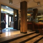 Es war früher hier mal ein Kino und es ist ein Raum mit sehr hoher Decke. Tische und Stühle aus dunklem Holz sind hier in unterschiedlichen Größen vorhanden so das auch größere Gruppen Platz finden. Es ist aber alles ein wenig abgetrennt. Verschiedenste Dekoelemente und Bilder zieren die Wände.