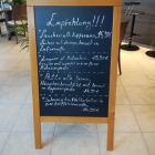 Wir wurden freundlich empfangen und uns wurde ein Tisch unter den freien angeboten. Vorzugsweise ein Zweiertisch. Dieser war aber angenehm durch einen bepflanzten Raumteiler abgeschirmt. Dennoch baten wir kurz darauf um Verlegung an einen anderen da dieser dann doch arg im Verkehr zwischen Eingang und Theke stand und so manch unangenehmer Schwall Kaltluft oder auch Betrieb vorbei kam.