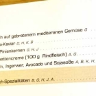 Das gepflegte Restaurant rappelvoll, die Luft auch. Wir wurden nett von einer jungen Mitarbeiterin empfangen und zu unserem 2er-Tisch geleitet, die Karten gereicht. Nach einigen Minuten gewöhnte ich mich an die Sauerstoffknappheit des bis ins letzte Eck bestuhlten Gastraumes.