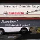 Nachdem schon am Freitagabend einer meiner Kartenkumpels vom Wirtshaus Stehkragen, er war seit Eröffnung Anfang März schon siebenmal dort eingekehrt, mir den Stehkragen zum wiederholten Male empfohlen hatte, konnte ich Schätzchen davon überzeugen, dass wir endlich auch mal dort einkehren.