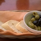 Als Gruß aus der Küche wurden köstliche Oliven in einem leckeren Öl zusammen mit Baguettescheiben für uns beide gereicht.