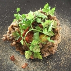 Die Vorspeisen im Menü folgen dem Restaurantkonzept, das Gerichte zum Teilen vorsieht. Hier gibt es marinierten Kingfish, der mit Lardo, Crème fraîche, eingelegten Zwiebeln sowie einem Wildkräutersalat und gepufftem Wildreis versehen wird. Das ist frisch, texturell abwechslungsreich und sehr lecker.