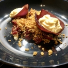Leib- und Magenspeise des Herrn Tischnotizen: Étouffée Taube from nose to tail, Brust und Keule und eine Praline aus den Innereien.