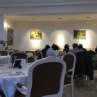 Ins Hotel rein gekommen fragten wir erst mal wo denn das Restaurant sei, wir konnten keine Hinweis Schilder finden. Die Dame am Empfang teilte uns dieses dann mit. Da standen zwei Herren mitten im Empfangsbereich und schauten uns an. Es stellte sich dann heraus die gehören zum Restaurant, den sie folgten uns . Der eine kam zu uns und der andere begab sich hinter die Bar. Wir nennen ihn dann Barmann und er war mit schwarzer Hose, weißen Hemd und schwarzen Hosenträgern bekleidet. Der Kellner hatte einen schwarzen Anzug, weißes Hemd und schwarze Krawatte an. Ein Platz wurde uns nicht zugewiesen, der Kellner wartete bis wir uns selber einen ausgesucht hatten und Platz genommen hatten. Er kam mit den Karten an den Tisch, reichte uns diese geschlossen und meinte Bon journo und zündete nebenbei die Kerze an. Nun bekamen wir Zeit um nach Getränken zu schauen. Wir bestellten dann die Getränke, saßen vor offenen Karten und er meinte, was wollen sie essen. Das sieht man doch , dass wir noch schauen. Also mitgeteilt, wir wissen es noch nicht. Er nahm die ganzen Gläser mit und brachte bald darauf die Getränke und erfragte erneut die Essenswünsche. Ich fragte dann was denn die Beilagen wären und er meinte in einem nicht gerade freundlichen Ton- natürlich wie immer Kartoffeln und Gemüse. Ich weiß es nicht, war noch nicht hier. Kurz darauf fanden sich ein Körbchen Brot und ein Dipp auf unseren Tisch wieder. Die beiden Sachen kamen Wortlos an.