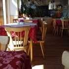 Manche Gäste saßen schon im Freien, uns war das kühl und in der Jacke isst es sich nicht so gut. Drinnen im Gastraum ist es nicht soo gemütlich, im angrenzenden Wintergarten schon eher. Allerdings stand die Tür zur Terrasse offen und wir waren so auch drinnen gezwungen, mit der Jacke zu essen. Um uns herum saßen überall Stinkwanzen, aber der Wirt meinte dazu nur, in der ersten Etage hätte er ganz viele Marienkäfer.