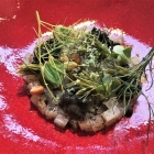 Auf diesen Teller habe ich mich besonders gefreut, weil das Ei so herrlich sein kann. Aber es war innen leider nicht flüssig. Erik Scheffler bemerkte auf meine Nachfrage, dass viele Gäste ihr Ei am Anfang beanstandet hätten, weil es zu roh sei. Wenn das zutrifft, sind diese Kunden wohl aus der Abteilung Steak well done oder es ist die ständige Angst vor Salmonellen. Ich liebe Ei-Dotter sehr weich. Nun gut! Trotzdem war das Gericht sehr schmackhaft – meine Bedenken vorher war eher der Aal gewesen; denn ich habe sehr gerne Fische und andere Meerestiere – nur der Aal gehört nicht so sehr dazu. Aber im Zusammenspiel von Spinat, Creme und Brot passte das sehr gut für mich.