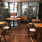 Das Lokal ist klein. Um die Theke herum, die auch gleichzeitig offene Küche ist, stehen an der Fensterseite zur Straße kleine Tische für zwei Personen. Man kann auch am Tresen auf Hockern sitzen oder einige Hochtische benutzen. Draußen stehen Sonnenschirme und darunter gibt es weitere Tische.