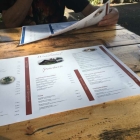 Die Speisekarte liegt als großer Zettel , sozusagen als Tischuntersetzer , am Tisch. Es gibt hier Balkan Gerichte, Schnitzel, Fisch, Pasta, Vegetarisch, Salate, Vorspeisen, Suppen, Kindergerichte und „ Zwischengerichte“ wie Wurstsalat und Currywurst. Hauptauge wir auf Balkan Gerichte geschmissen, ansonsten vieles quer durch die Bank. Am Tisch gibt es noch einen Aufsteller das sie jetzt neu auch Pinsa im Angebot haben