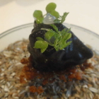 Das ist auch gar nicht nötig, denn der Kieselstein entpuppt sich als lockere und schmackhafte Kalbslebermousse, die einen aus Algen zubereiteten Mantel erhält.