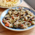 Alle Meze waren nett angerichtet, vier auf sehr hübschen Tellern mit hellblauer Innenseite. Die Portionsgrößen sehr befriedigend! Meine Favoriten waren das Taramas (aus nicht gefärbtem Fischrogen weiß) mit kräftigem Fischgeschmack und noch akzeptabel cremig und der Auberginensalat (Melitzanosalata). Er war ohne Joghurt zubereitet, wie ich es bevorzuge. Also ein frischer Geschmack mit Olivenöl, Zitrone, Petersilie, Knoblauch (dezent) und ich meine, Nüssen. Die Auberginen stückig. Das Tzatziki auch erfrischend mit Dillnote und die Dakos mit eindeutiger Käsecreme. Die Weinblätter mit langweiliger Füllung und das Hummus leider recht fad. Zwar waren ein paar Pinienkerne und Olivenöl aufgebracht worden, aber das Hummus selbst kaum gewürzt. Da gehört für mich Kreuzkümmel dran. Im Mittel sehr solide vier Sterne für den Mezegang.