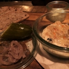 Aus den Vorspeisen wählen wir zum Teilen bei unserem Erstbesuch Kaninchen-Rillette, das mit dem hausgebackenen Brot, Gurke und eingelegten Zwiebeln eine würzig abgeschmeckte Angelegenheit ist.