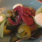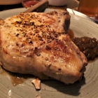 Ich habe Lust auf ein Kotelett. Bei vertrauenswürdiger Schweinequalität für mich immer noch eins der köstlichsten Stücke vom Tier. Das ist auch hier nicht anders, aber die schiere Größe des Fleischbrockens erschreckt mich dann doch und verlangt nach tatkräftiger Hilfe. Davon unbenommen ist der ausnehmend gute Geschmack, der einem mal wieder deutlich macht, warum man so dringend die Finger von eingeschweißtem Massengelumpe für 4 Euro das Kilo lassen sollte. Malzzwiebeln und Gerstencrunch unterstützen den Fleischgeschmack sehr gut. Ebenso auch die geschmorten Topinambur mit Spinat und einer hervorragenden Creme von geröstetem Knoblauch. Allerdings habe ich aufgrund der Fleischmenge damit leider arg zu kämpfen.