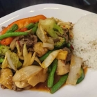 – gebackenes Huhn mit Soße nach Wahl, ihre Wahl fiel auf die Erdnuss-Sauce. Die könnte noch ein Tick „erdnüssiger“ sein, aber vielleicht sind das auch nur „künstliche Verstärker“ in den anderen asiatischen Einrichtungen. Ich hatte gestern Abend Rinderfilet mit Chilli, Zitronengras, Bohnen, Champignons und diversem Gemüse (7,90), dazu gab es Reis und eine scharfe Sauce.