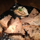 Crispies auf Reisbasis, wie beim Inder zur Yoghurt-Minz-Sauce und eine erstaunlich gute Hummus-Variation mit gesäuerter Mango. Hummus mit einer Frucht zu veredeln ist mir noch nicht untergekommen, aber das Resultat war ein feiner Auftakt für unseren Abend im IKO. Die Karte besteht aus drei Menüvorschlägen von 3 bis 6 Gängen und bietet eine asiatisch inspirierte Küche. Letztendlich fiel die Wahl auf das 4 Gang Menü für meine Frau und die 6 Gänge für mich. Nachdem wir uns Menütechnisch also entschieden hatten, servierte der Service Brot, selbstgebacken (den Ofen hatte ich ja schon angesprochen) und aus Sauerteig, mit einer Algenbutter und einer geräucherter Salzbutter.