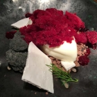 Rote Beete Granite mit Schokolade, Tonkabohne und Fenchelbaiser. Beim Dessert lasse ich die Bilder sprechen, nur eines zu diesem Dessert, rote Beete Eis ist Genial! Für mich ein ebenso optischer Leckerbissen