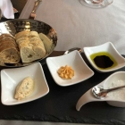 Begleitend dazu wurde eine Brotauswahl von hellem und dunklem Brot. Dazu drei Schälchen mit zweierlei Aufstrichen, Olivenöl mit Balsamico und ein Schälchen Salz.