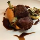 Das Hauptgericht ein auf den Punkt gebratenes Rinderfilet mit Süßkartoffelpüree und Grillgemüse. Ein echter Gaumenschmeichler.