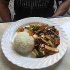Die Gerichte stehen auf einer Tafel über dem Bestelltresen. Es gibt aber auch Flyer zum mitnehmen.Es gibt hier China und Thai Gerichte die es zum Teil in verschiedenen schärfe Stuben gibt. Diese sind durch Peperoni angezeigt.